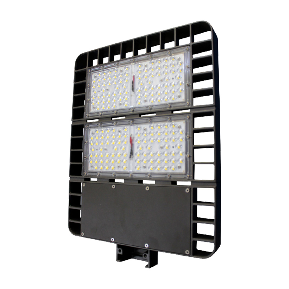 LED Parking Lot Lights feature an architectural design, providing uniformity across multiple wattages. These well-designed lights use the best drivers, and Type 4 lenses, and come with multiple brackets for better adjustment and easy installation. They provide a luminous flux range from 14,000 to 56,000 lumens, available in 5000K color temperature. Color options include bronze and black, with white available upon order. Both low voltage (100-277V) and high voltage (200-480V) options are available in stock. Additionally, a photocell option is available.