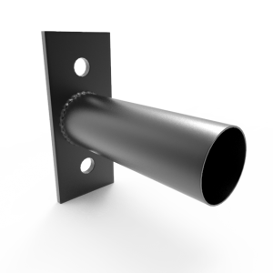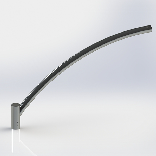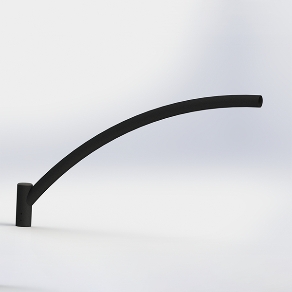 These brackets are utilized for street lighting and the extended arm aids in illuminating roadways. The up-sweep design allows for a wider distribution of light, improving visibility on the roadways. This bracket is designed to fit both metal and concrete poles, providing a versatile solution for various outdoor lighting needs.