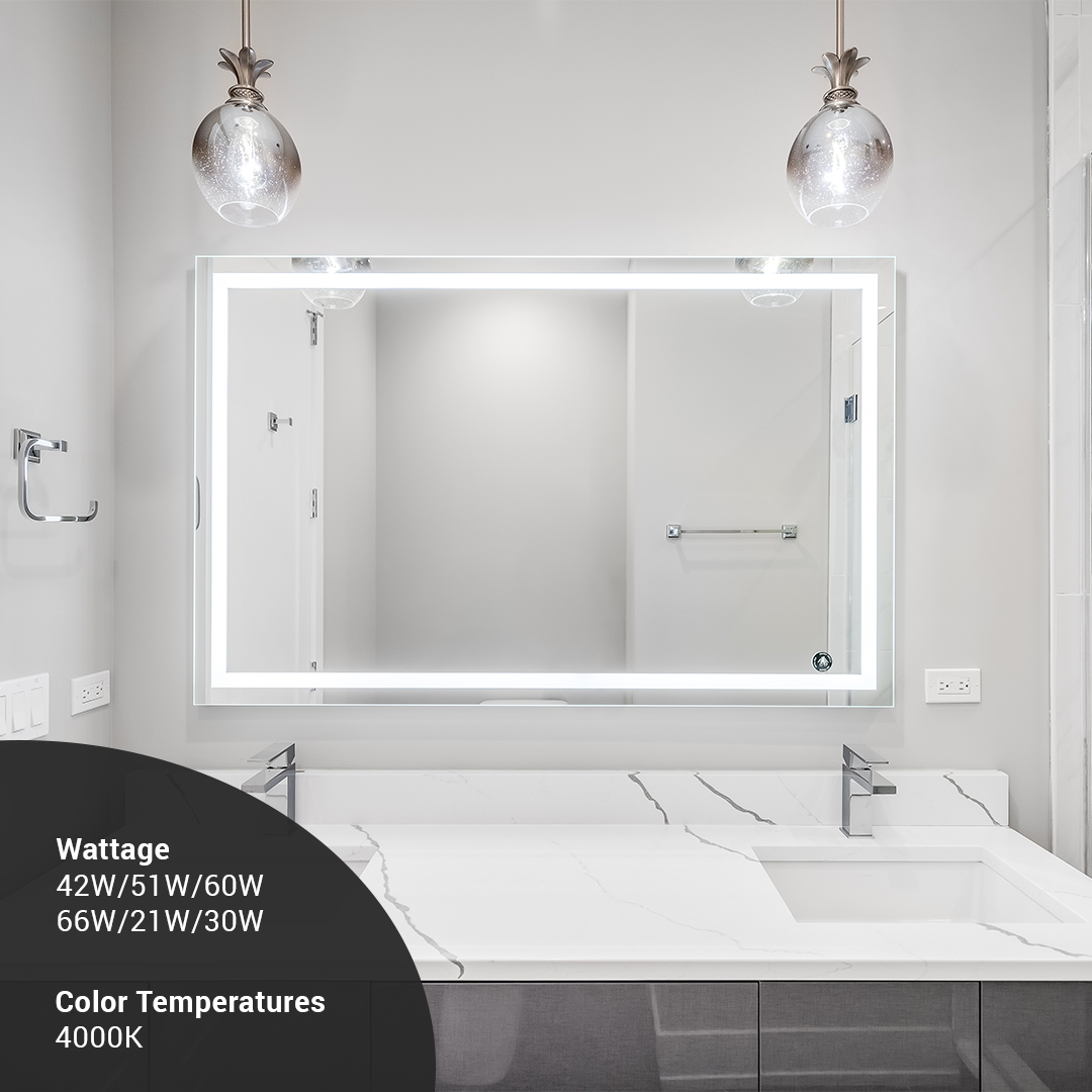 | HL-3642 Backlit Mirror 60W 4K | 36 X 42 | 60W | 4000K | 0.556A | 0.9 | 120-277Vac |