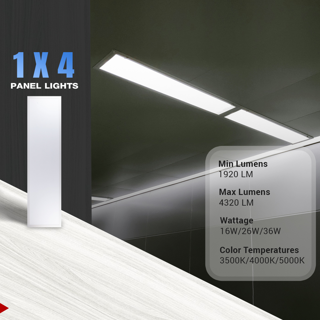 | HL-1X4-MW-MCCT BACK-LIT PANELS | 16W/26W/36W | 1920lm/3120lm/4320lm | 3500K/4000K/5000K | 0.148A/0.241A/0.333A | 0.9 | 120-277Vac |